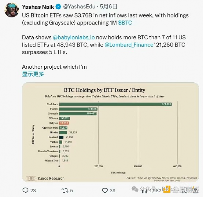 لذلك، تمتلك Lombard 19 مليار دولار من TVL المرتبط ببتكوين، مبني على Babylon. يسمح للمستخدمين بتخزين BTC من خلال Babylon والحصول على LBTC، وهي رمز تخزين سائل يمثل مركز التخزين.