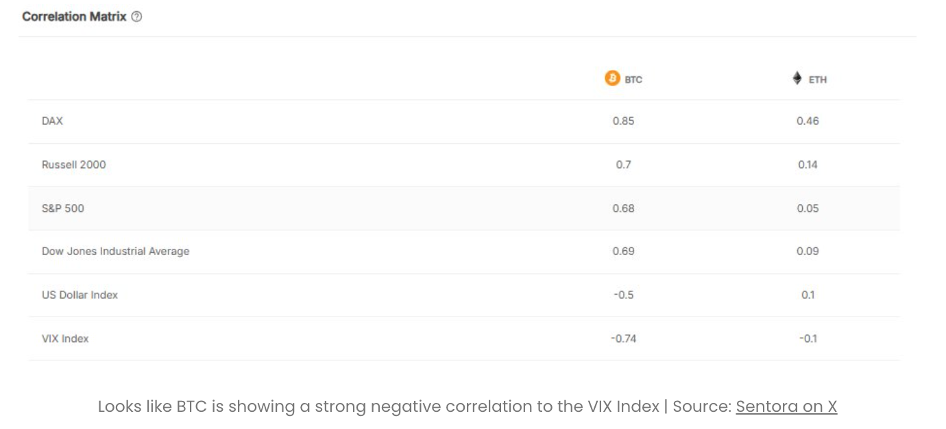 مثل الأسهم، فإن علاقة إثيريوم بمؤشر الدولار (DXY) ومؤشر التقلب (VIX) صغيرة جداً، مما يؤكد أن هذه العملة المشفرة تتبع اتجاهها الخاص مؤخراً.