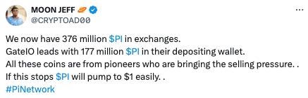 أشار محلل العملات المشفرة Moon Jeff إلى أن التبادل يحتفظ حاليًا بـ 3.76 مليون عملة PI، حيث يمتلك محفظة الإيداع في Gate 1.77 مليون عملة PI.