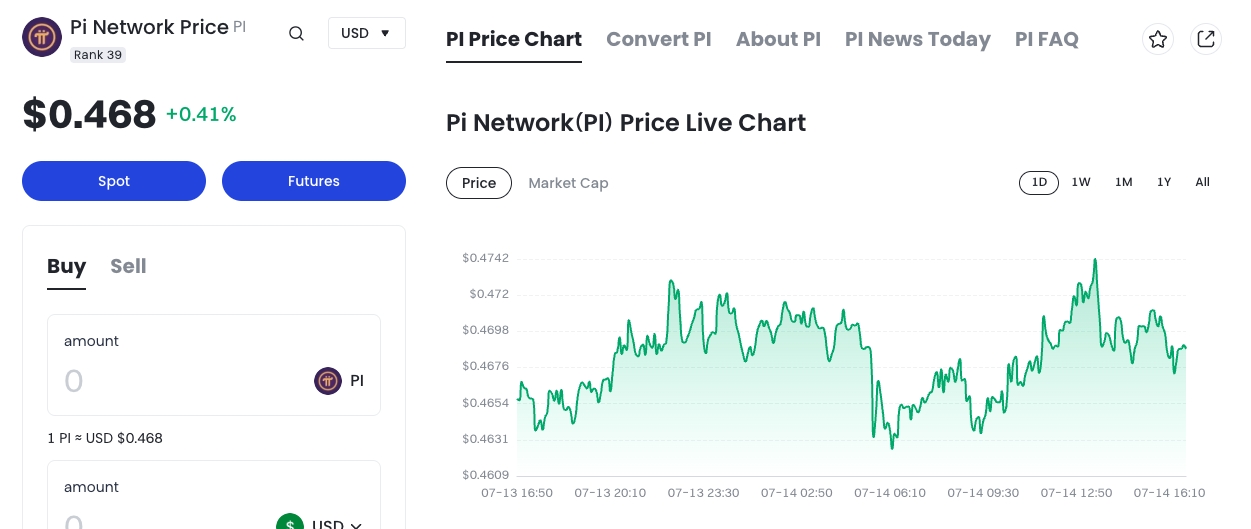 شبكة Pi (PI) كانت تتوقع منذ فترة طويلة إطلاق الشبكة الرئيسية (Open Mainnet) ولكن لم يتم كما هو مخطط له، في المراحل المبكرة، كان سعر تداول عملة Pi قريبًا من 3 دولارات، ولكن حتى اليوم (14) خلال الفترة الآسيوية، انخفضت عملة Pi إلى 0.46 دولار، وقد تلاشت القيمة السوقية بأكثر من 15 مليار دولار.