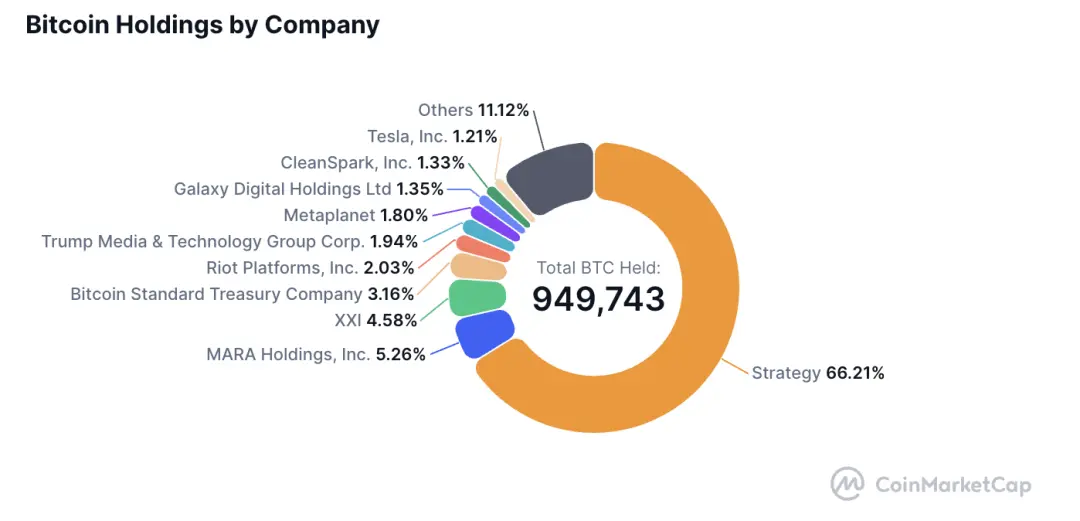 استراتيجية DAT للشركات المدرجة: استراتيجية التحول لشركة MicroStrategy، إطلاق استراتيجية Bitcoin Treasury، وابتكار نموذج كيمياء رأس المال المدفوع بثلاثة محاور - من خلال السندات القابلة للتحويل بدون فائدة / إصدار الأسهم لجمع الأموال، شراء BTC، تغذية التقييم، رفع سعر السهم، وإعادة التمويل. المنطق الأساسي لهذه الاستراتيجية هو: عندما يكون هناك علاوة في القيمة السوقية مقارنةً بقيمة الأصول الرقمية على الميزانية العمومية، يتم استخدام أدوات مالية مثل الزيادة المحددة، السندات القابلة للتحويل، والأسهم الممتازة لجمع الأموال من السوق، وشراء المزيد من الأصول الرقمية، مما يؤدي إلى تأثير الشركات المدرجة في تكديس المزيد من الأصول بتكلفة أقل. قامت MicroStrategy من خلال هذه الاستراتيجية بتجميع أكثر من 628,000 وحدة BTC، وقد أدت هذه الاستراتيجية إلى انضمام أكثر من 134 شركة مدرجة إلى BTC في خزائنها، مع احتياطي إجمالي يتجاوز 949,000 وحدة BTC.
