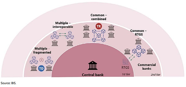 إذن، في الشكل 7، كيف يمكن تحقيق الفريدة في منصة DLT العامة غير المصرح بها (أو العملات المستقرة المصدرة على مثل هذه المنصات) التي لا تزال في الطبقة الخارجية لنظام من طبقتين؟ لا يزال هذا مجالًا جديدًا يحتاج إلى تحليل شامل وعقلاني لفهم الظروف التي يمكن أن تندمج فيها المنصات في نظام بيئي توكين متنوع وحيوي.