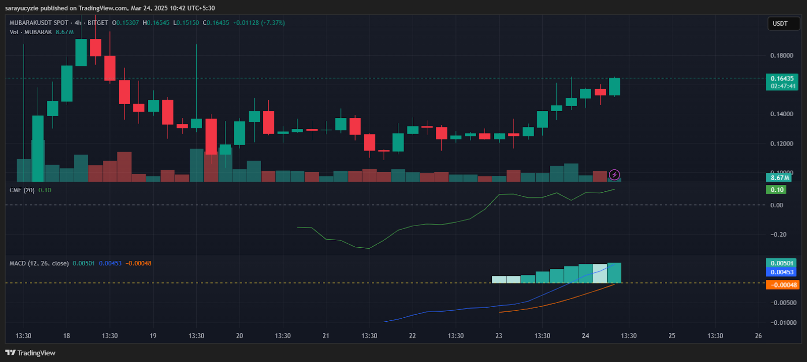 الزخم الصعودي يتردد عبر سوق العملات المشفرة، مضيئًا الشموع باللون الأخضر. يمكن أن يدفع الضغط المستمر من الثيران الأسعار إلى ارتفاعات جديدة. في الوقت نفسه، انضمت MUBARAK إلى الانتعاش، مسجلة قفزة قوية بنسبة 27.63%.