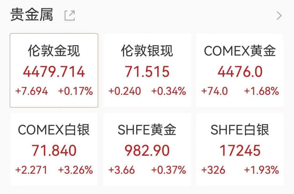في صباح يوم 25 مارس في آسيا والمحيط الهادئ، ارتفعت المعادن الثمينة، حيث ارتفع الذهب الفوري بنسبة 0.17% ليصل إلى 4479.714 دولار للأونصة، وارتفعت الفضة الفورية بنسبة 0.34% إلى 71.515 دولار للأونصة.