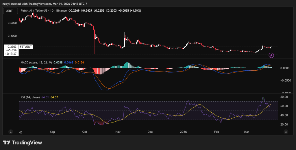 Daten vom März untermauern diese Verbesserung. Zu Beginn des Monats wurde FET bei etwa 0,16 USD gehandelt, fiel um den 10. März auf rund 0,14 USD, bevor es bis zum 19. März auf etwa 0,22 USD stieg. Derzeit liegt der Kurs bei rund 0,23 USD, was mehr als 30 % über den Anfangsständen im März liegt.