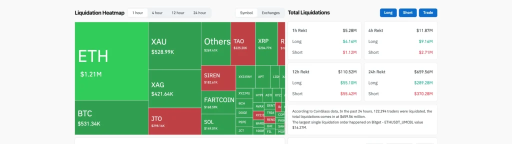 Liquidationen im Wert von 400 Mio. USD, 70 % Long-Positionen erreichen neues Hoch seit 25. Februar