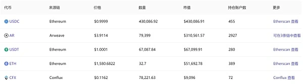 En la actualidad, el monto total de bloqueo de cada cadena supera los USD 1.1 millones, y el monto principal de bloqueo proviene de Arweave y Ethereum. **