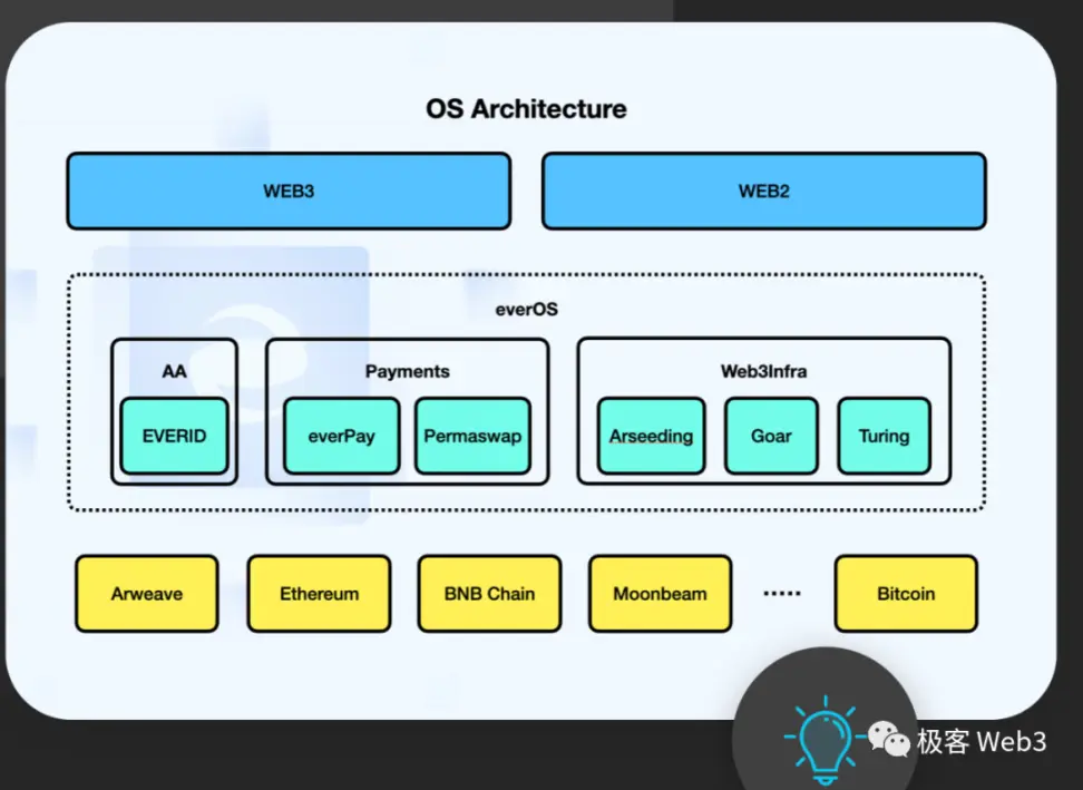 La capa DA del proyecto utiliza la instalación de almacenamiento permanente Arweave, el círculo grande en la imagen.