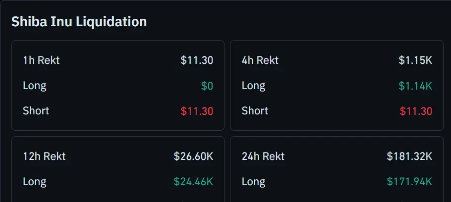 Mientras tanto, los datos de liquidación de Shiba Inu revelan una volatilidad significativa en el mercado, con diferentes marcos de tiempo mostrando distintos niveles de liquidación. En las últimas 24 horas, Shiba Inu ha registrado una liquidación total de $181.32K.