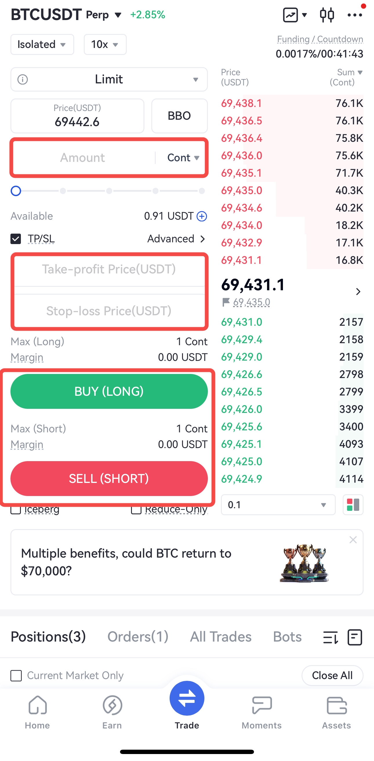- Les fonds du compte de contrats à terme ne seront pas bloqués en tant que marge jusqu'à ce que le TP/SL soit déclenché et placé avec le prix et le montant prédéfinis.