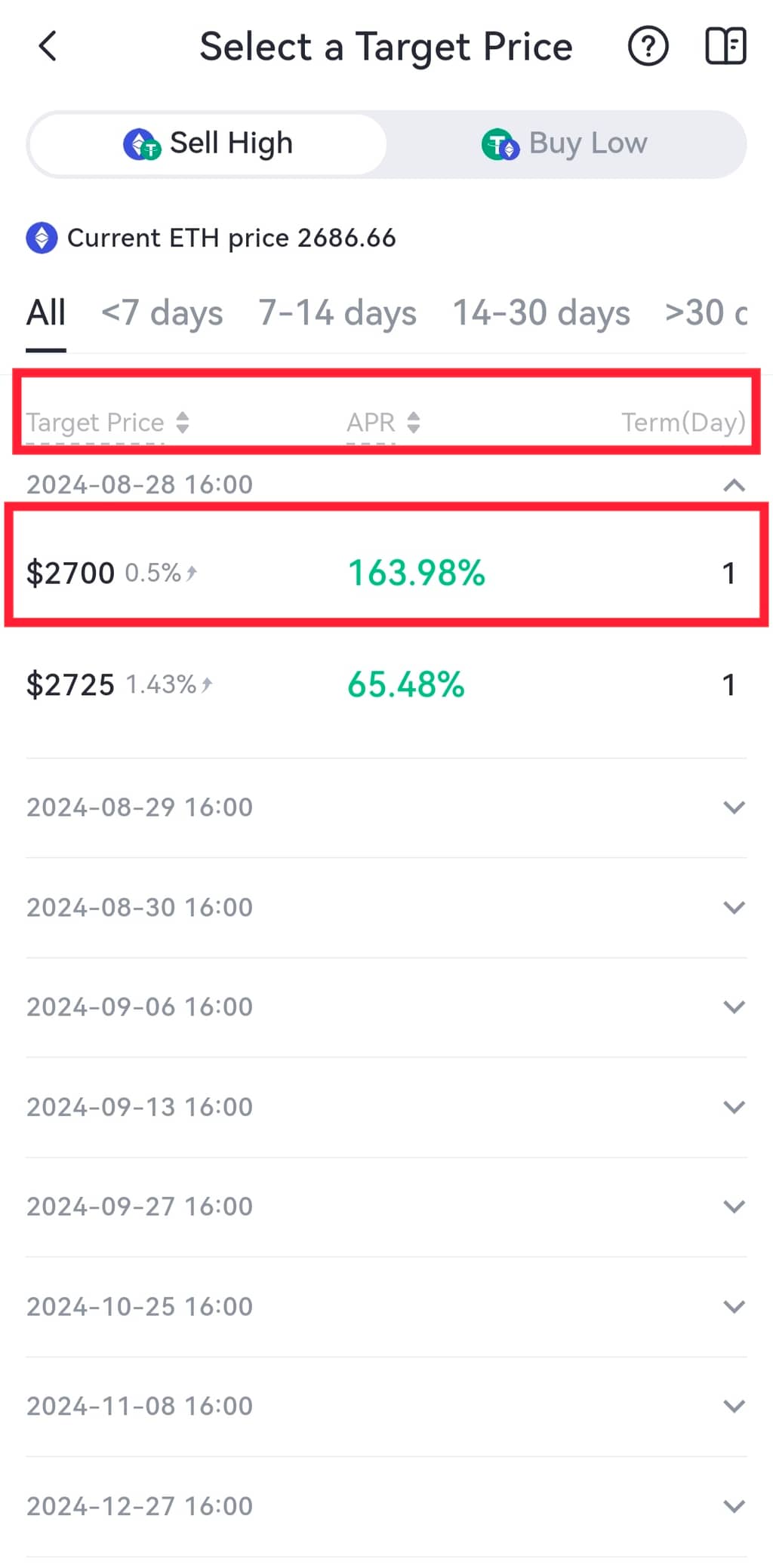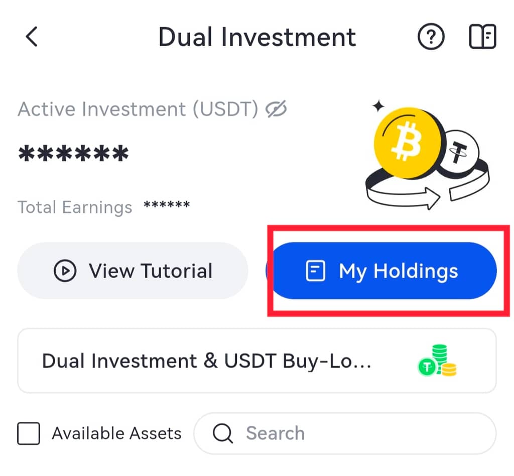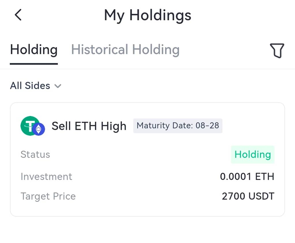 - Cliquez sur l'icône de l'entrepôt en haut à droite sur la page "Produit à double monnaie" et vous pourrez voir les détails de vos achats.