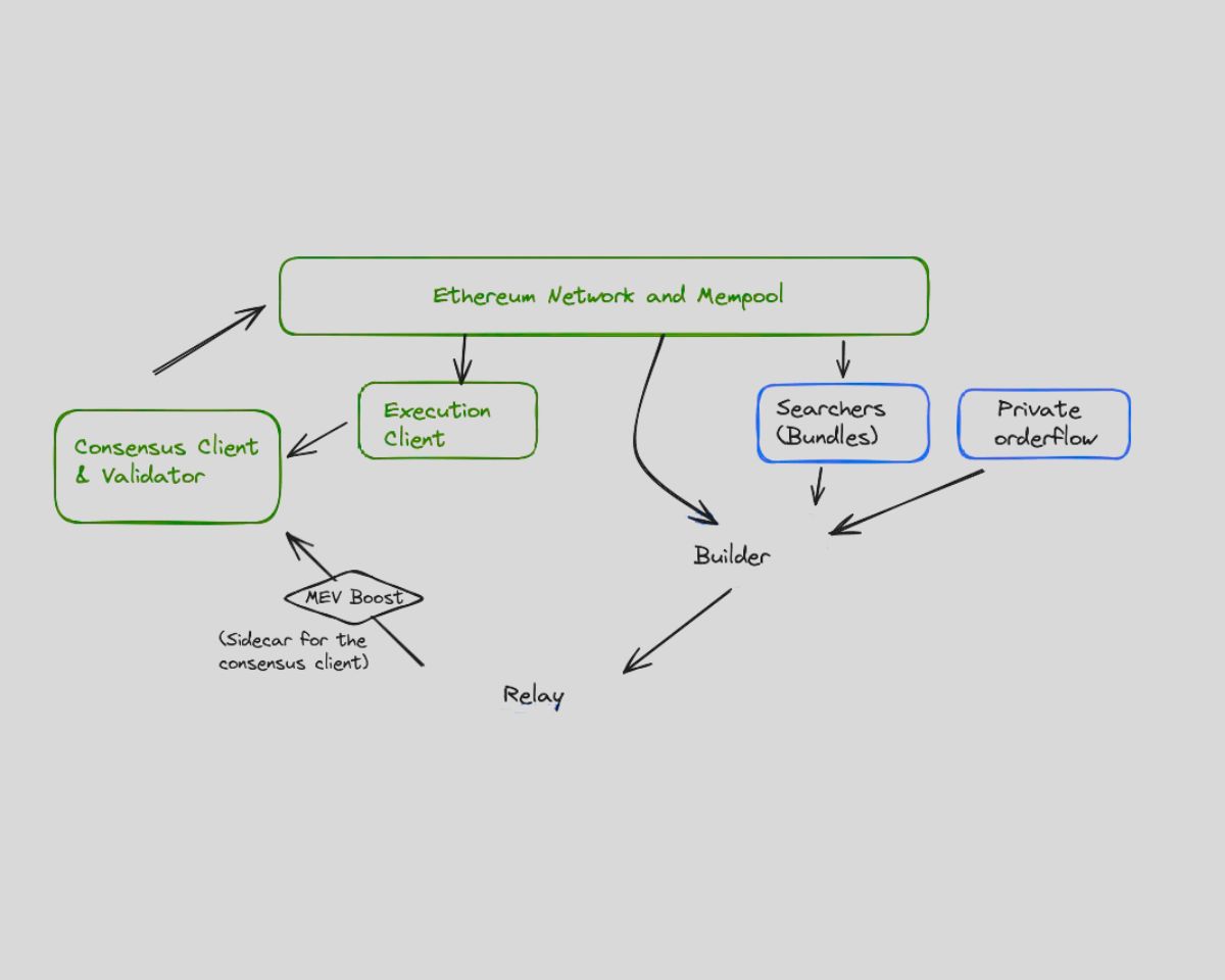 Avec MEV-Boost, la chaîne d’approvisionnement de la MEV est devenue plus structurée. À la base se trouvent les searchers, des acteurs spécialisés qui analysent le mempool, détectent les opportunités de MEV et créent des lots de transactions. Ces lots sont envoyés aux builders, qui les intègrent dans des blocs avec des transactions classiques d’utilisateurs et des stratégies de remplissage afin de maximiser la rentabilité. Les builders soumettent ensuite leurs blocs aux validateurs via les relais.