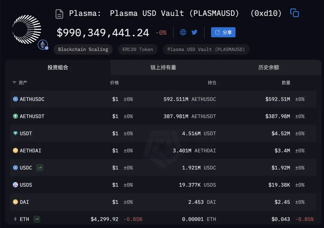 La figure ci-dessous montre la composition principale des dépôts de stablecoin dans le réseau Plasma : le noyau est presque entièrement composé de deux types d'actifs, AETHUSDC et AETHUSDT, représentant respectivement environ 60 % et 39 %.