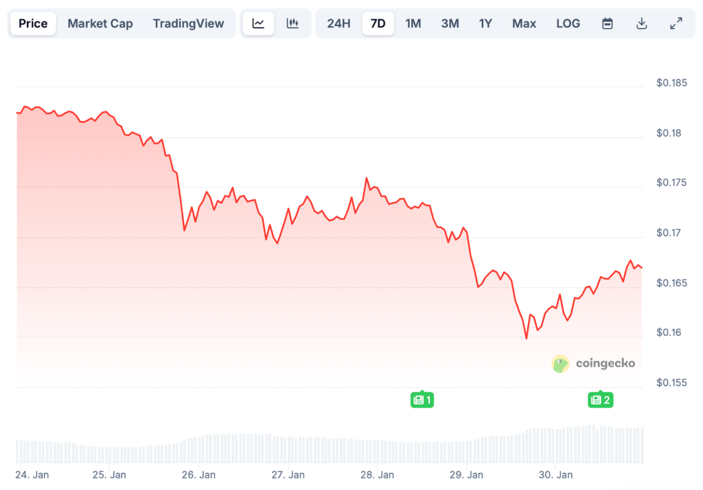 La prévision de prix du Pi Network est devenue de plus en plus compliquée alors que le projet reste bloqué dans le testnet sans date claire de lancement du mainnet. Le Pi Network se négocie actuellement autour de 0,17 $, après avoir augmenté de 2,69 % en 24 heures entre le 29 et le 30 janvier, bien qu’il reste en baisse de 8,25 % pour la semaine et de 18 % sur le mois.