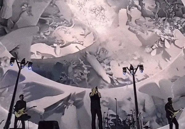Heureusement, l’histoire de la performance de U2 a également été caractérisée par l’écran à la fois comme arrière-plan et comme structure, ce qui a conduit U2 à forger des partenariats à long terme avec de nombreux concepteurs visuels et équipes bien connus, qui ont finalement donné forme, structure et couleur à ce bâtiment spectaculaire.