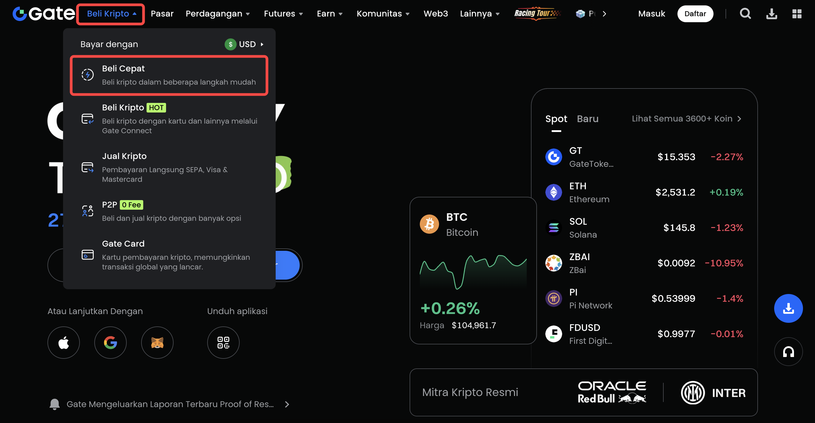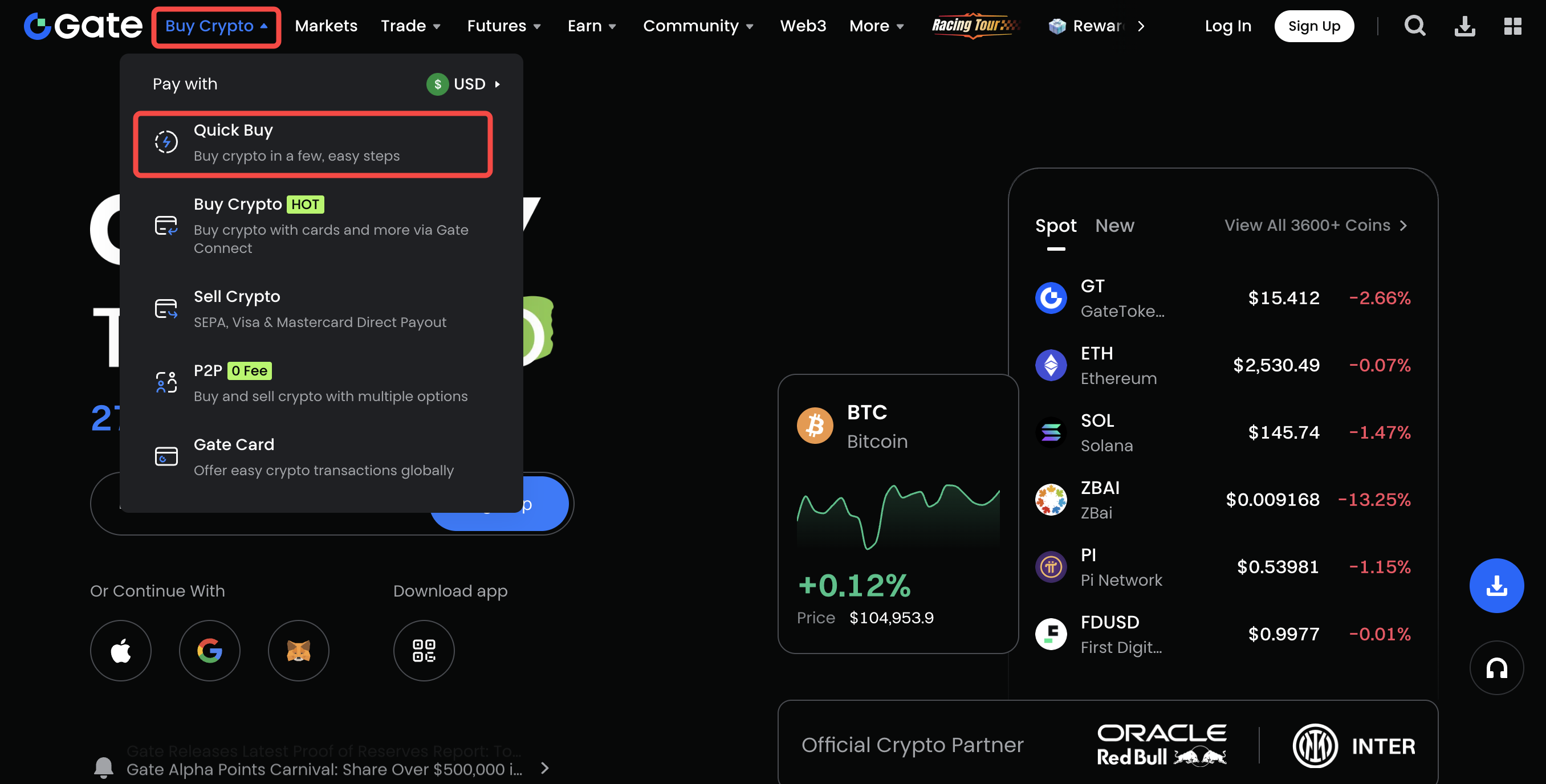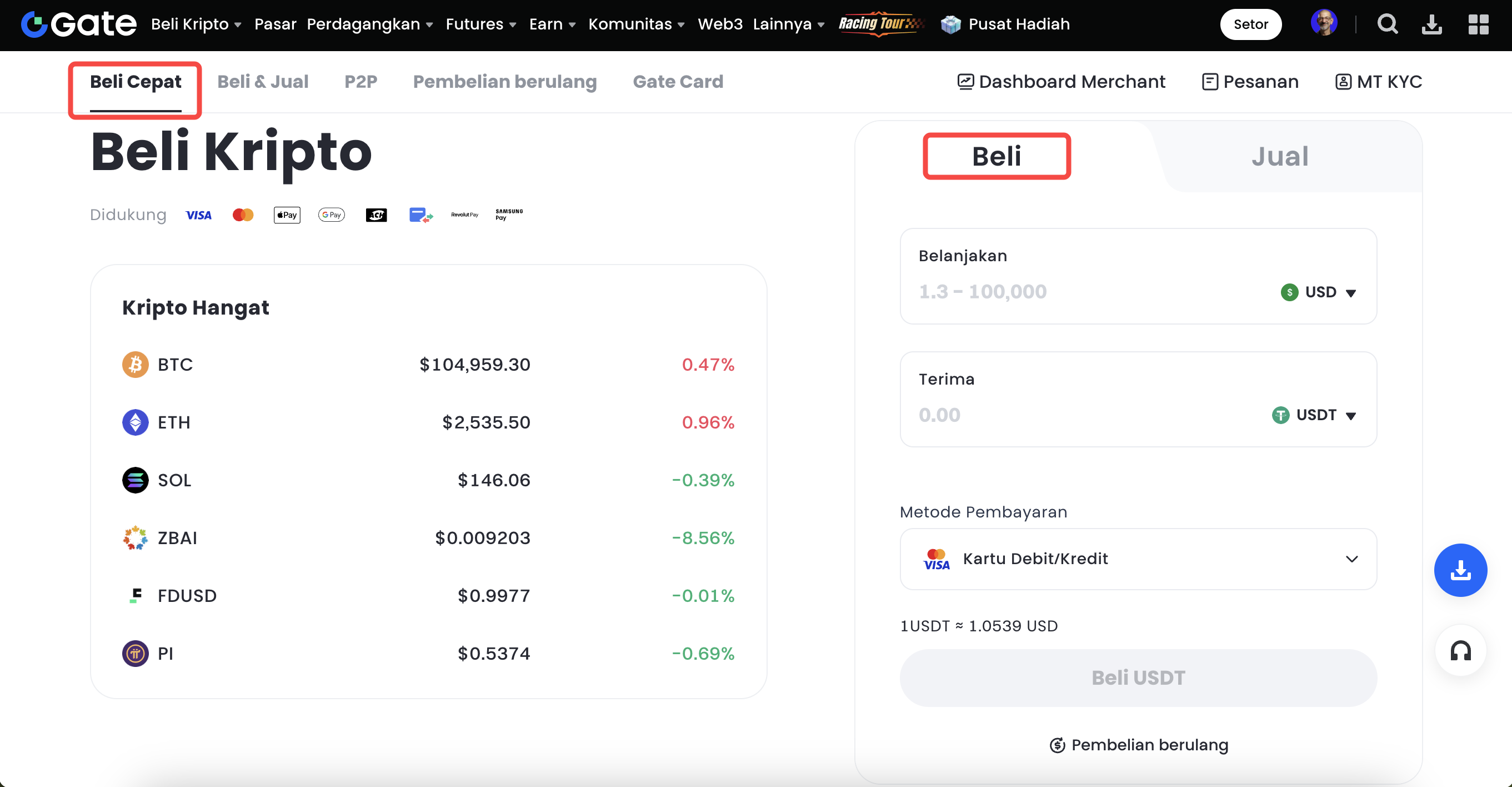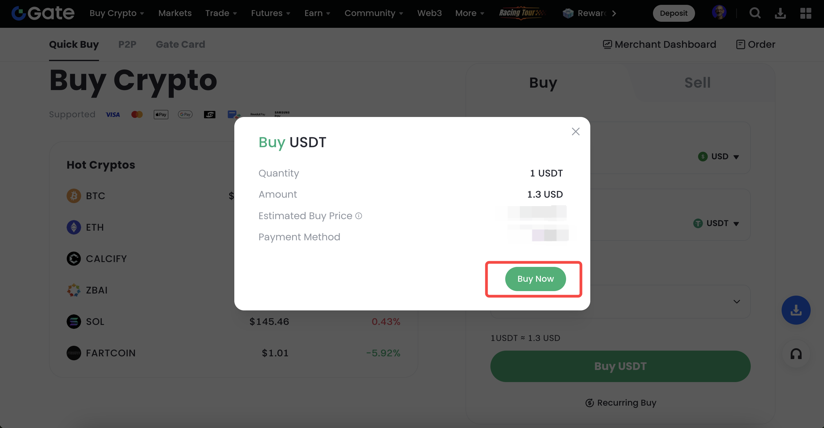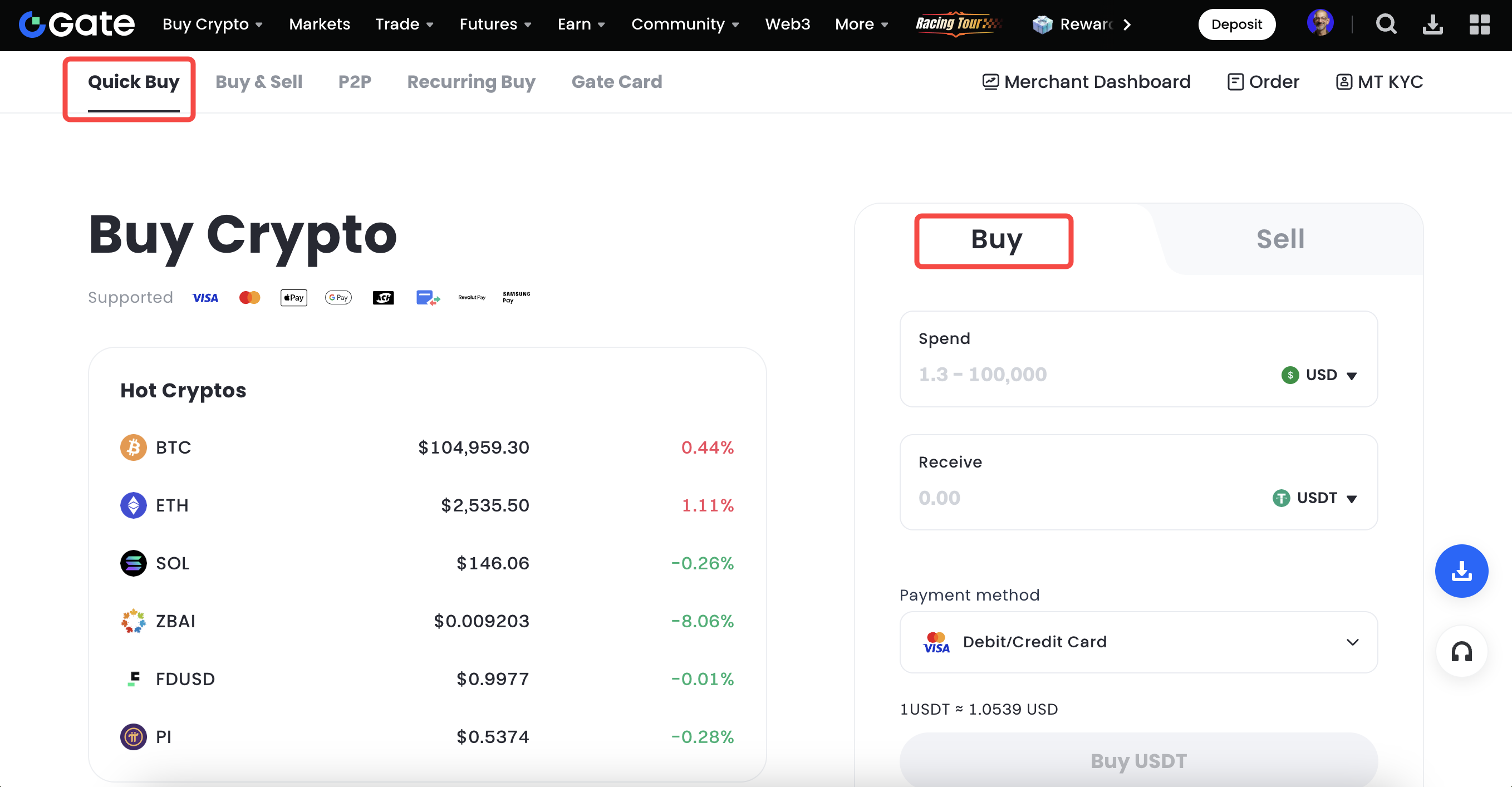 - Log in to your Gate account and go to "Buy Crypto"-"Quick Buy".