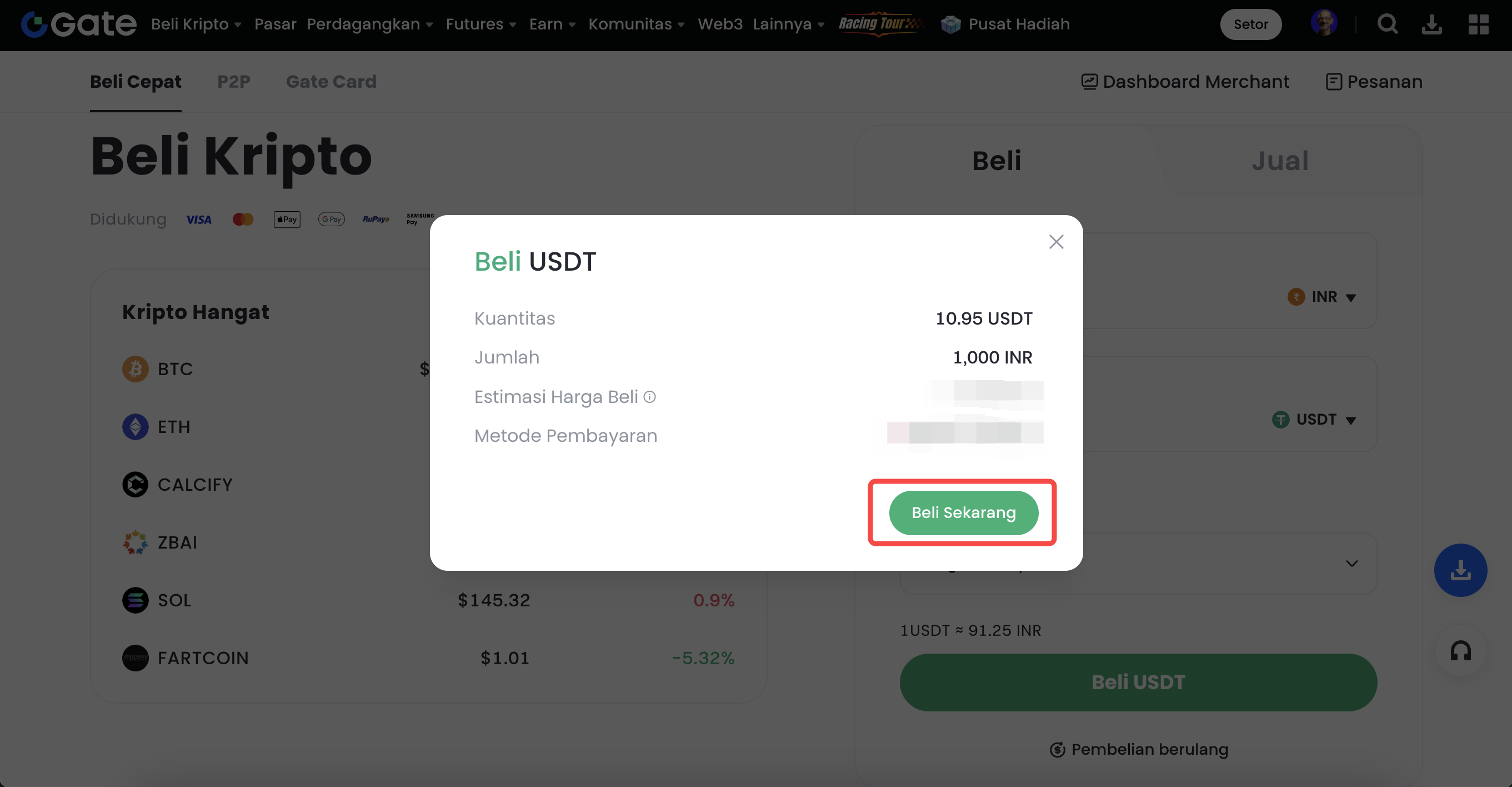 - Double-check all the information on the pop-up window and click "Buy Now". Then input your fund password.