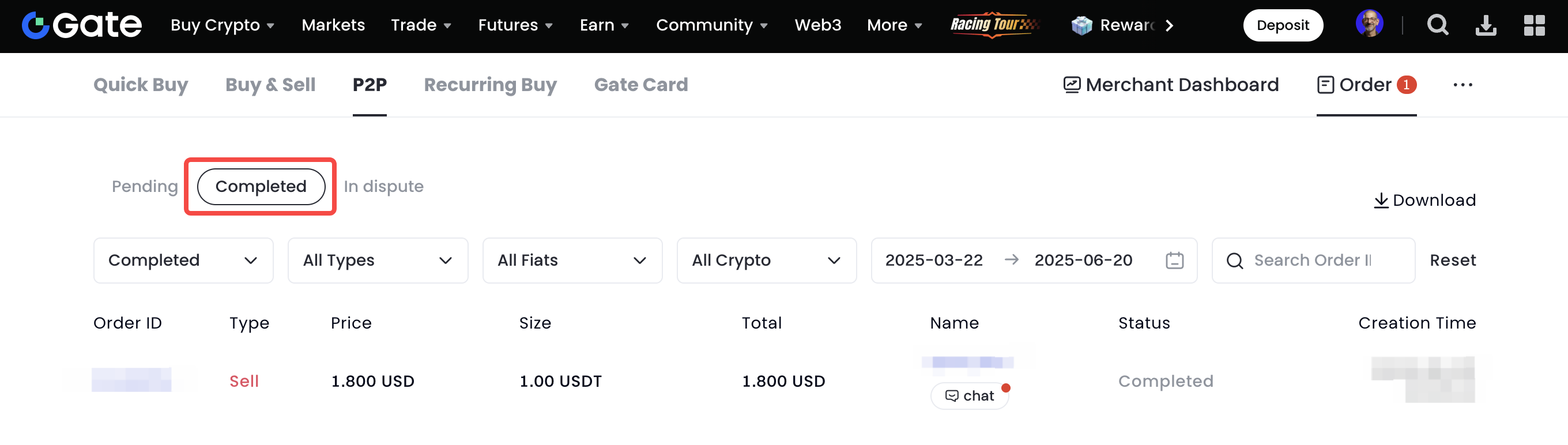 - Once the order is completed, it can be found under "Fiat Order"-"Completed Orders".