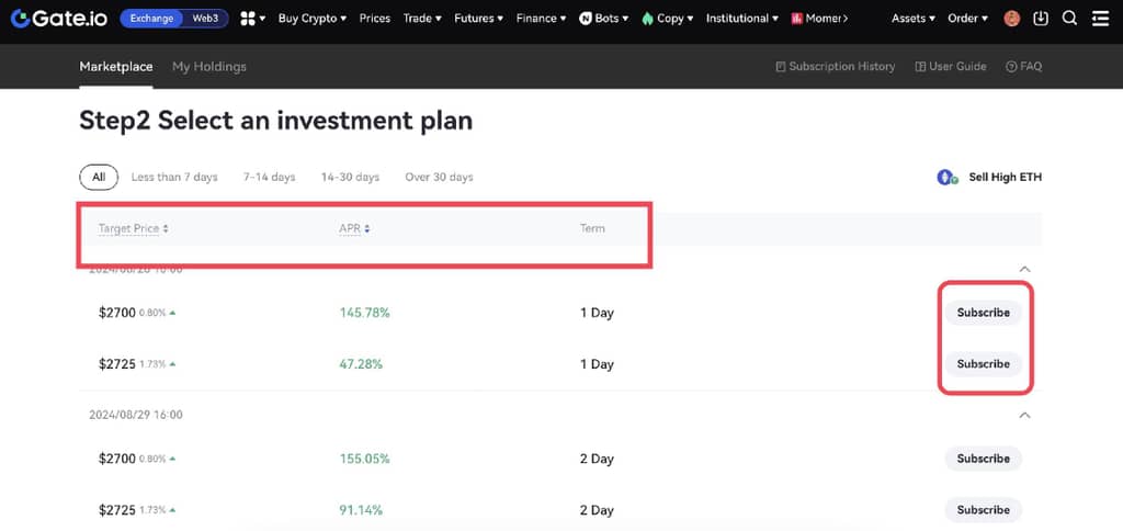 3. Anda dapat memeriksa Harga Target, APR dan Jangka Waktu。Anda dapat memilih rencana investaso dam klik pada“Berlangganan”。