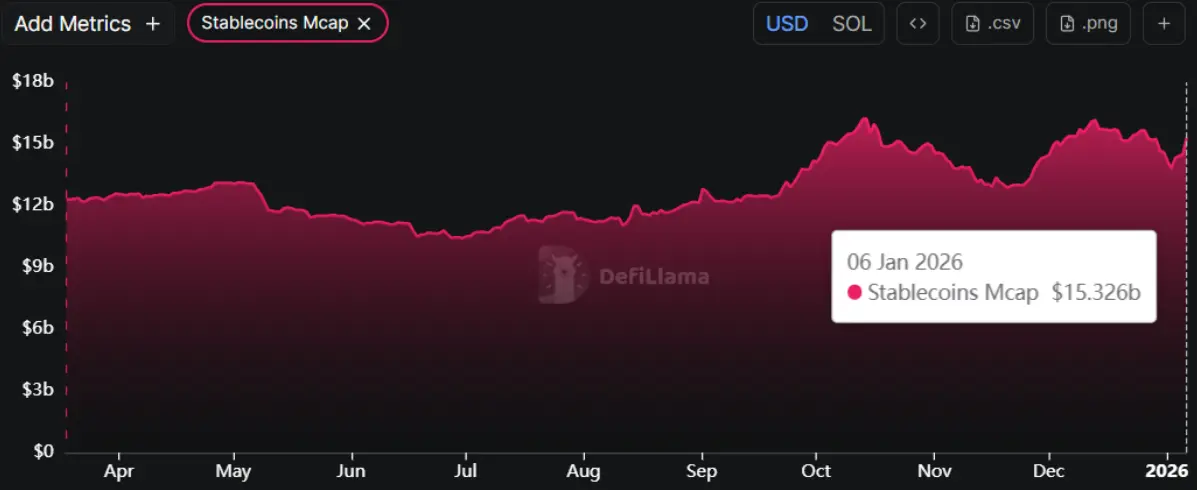 sol-tangSumber: CryptoQuantMenurut DefiLlama, total pasokan stablecoin di Solana telah pulih sejak awal Januari dan saat ini mencapai 15,32 miliar USD. Aktivitas stablecoin yang meningkat dan pertumbuhan nilai di ekosistem SOL adalah sinyal positif, karena mereka mendorong tingkat penggunaan jaringan dan dapat menarik lebih banyak pengguna.