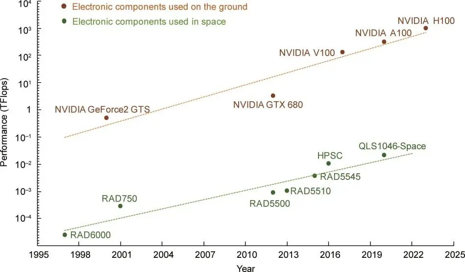 Untuk mengatasi ini, chip harus dilengkapi dengan perlindungan radiasi, yang meningkatkan biaya. Sebelumnya, untuk mengurangi pengaruh radiasi, chip satelit biasanya menggunakan proses teknologi yang lebih konservatif (proses lebih besar, lebih tahan radiasi), tetapi ini membatasi performa. Jika menggunakan chip proses maju, harus dilengkapi arsitektur toleransi kesalahan yang ketat, yang juga mempengaruhi efisiensi komputasi.
