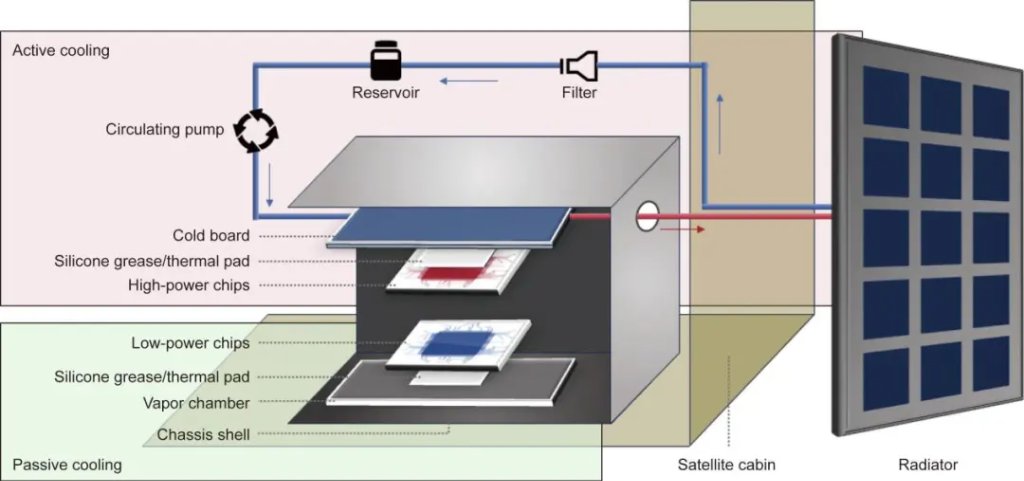 Gambar: Tata letak chip dan radiator di sisi bayangan panel surya untuk mengurangi pengaruh radiasi matahari
