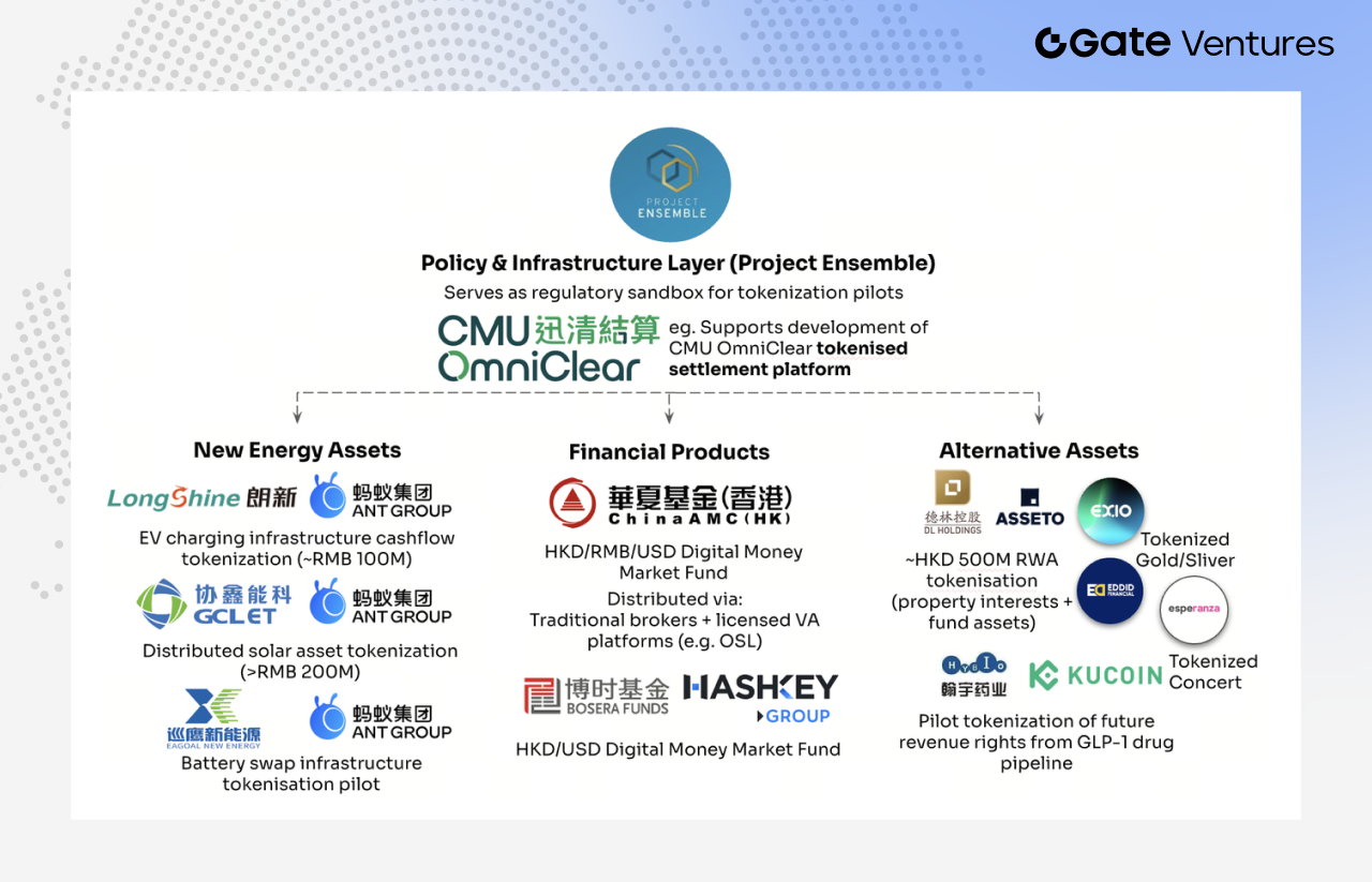 In August 2024, the Hong Kong Monetary Authority launched Project Ensemble, a sandbox initiative focusing on four areas: fixed income and investment funds, liquidity management, green finance, and trade and supply chain finance. Since then, several representative tokenization and RWA projects have emerged in the Hong Kong market, signaling a shift from proof-of-concept to real-world deployment.
