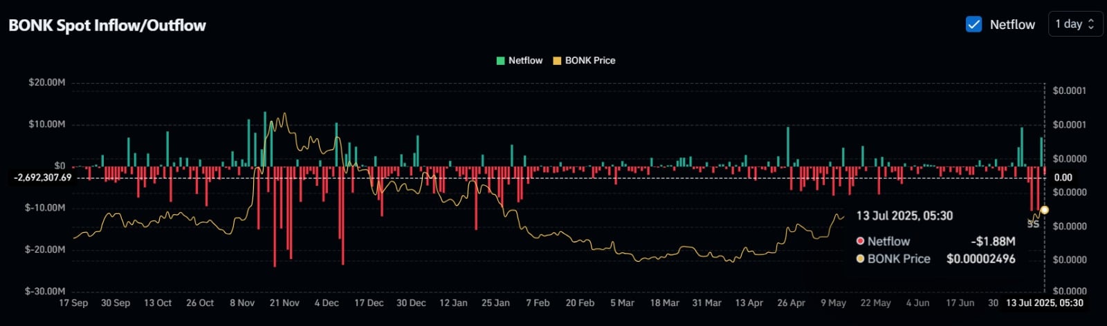 取引所の資金流出は、投資家と長期保有者の購入圧力が依然として強いことを示しており、これはBONKホルダーにとって強気のサインのようです。