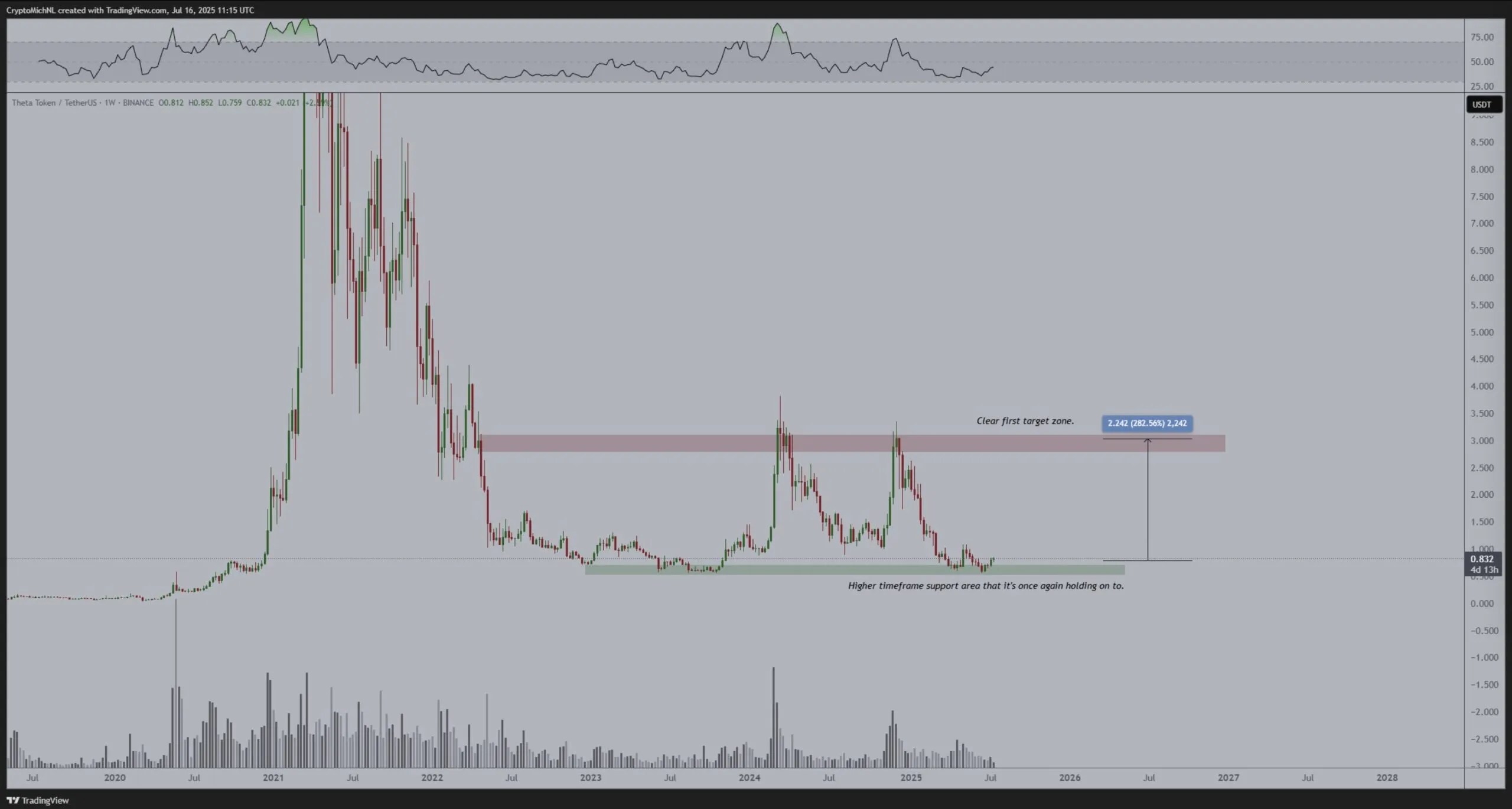 彼は、THETAが現在長期チャートで累計段階にあることを指摘しました。このポジティブな傾向が続く場合、彼はそのトークンが280%上昇する可能性があると予測しており、これは投資家にとってかなりの利益となります。