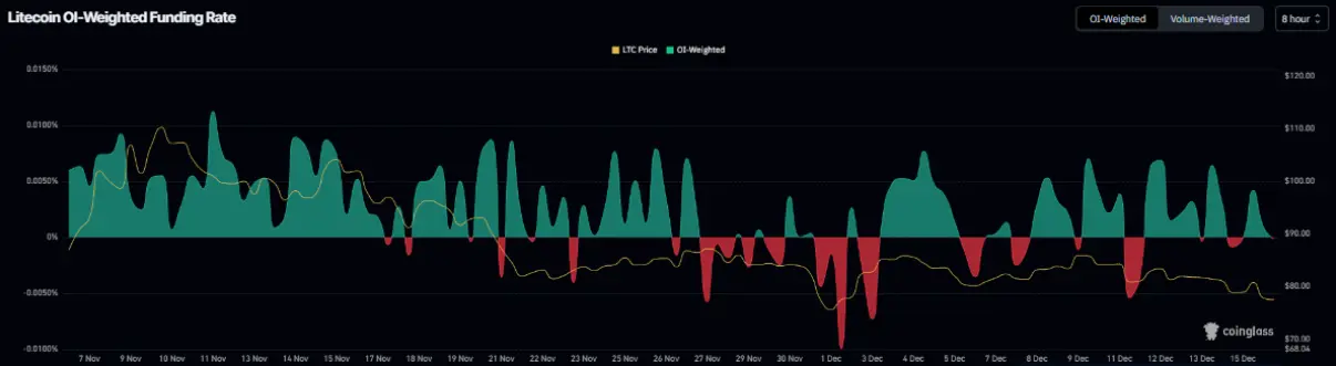 LitecoinのOI-Weighted Funding Rate指数 | 出典:Coinglass## Litecoin価格予測:弱気派が勢いを握る