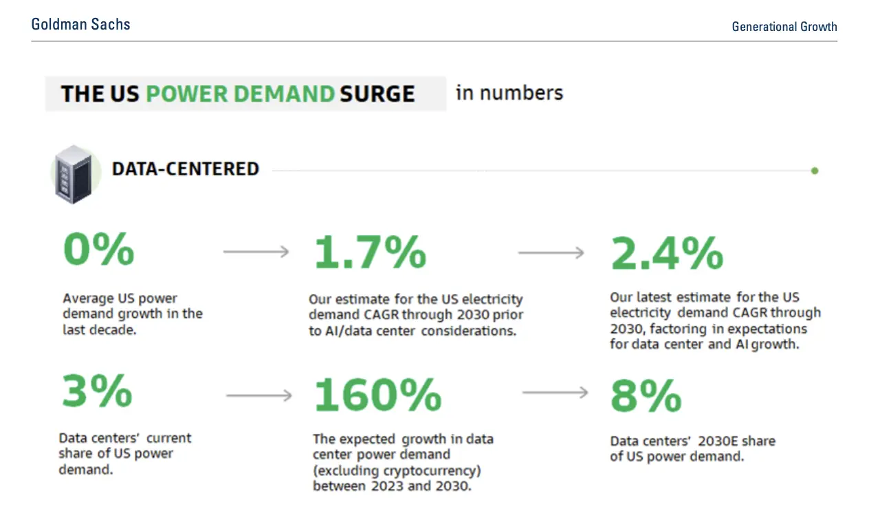 ゴールドマン・サックスによる米国データセンターの電力需要予測、画像出典