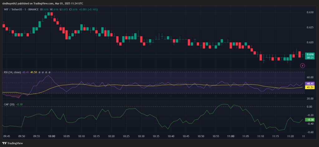 WIFは、ブルランを行うために0.6250ドルを超える必要があります。出来高が増加し、CMFがプラスに転じれば、WIFは0.6400ドルと0.6500ドルのより高い抵抗レベルをテストする可能性があります。WIFが0.6100ドルをキープできない場合、0.6000ドルまたはそれ以下の再テストが起こりやすくなります。トレーダーは、次の動きの確認のためにRSI、CMF、および移動平均を監視する必要があります。