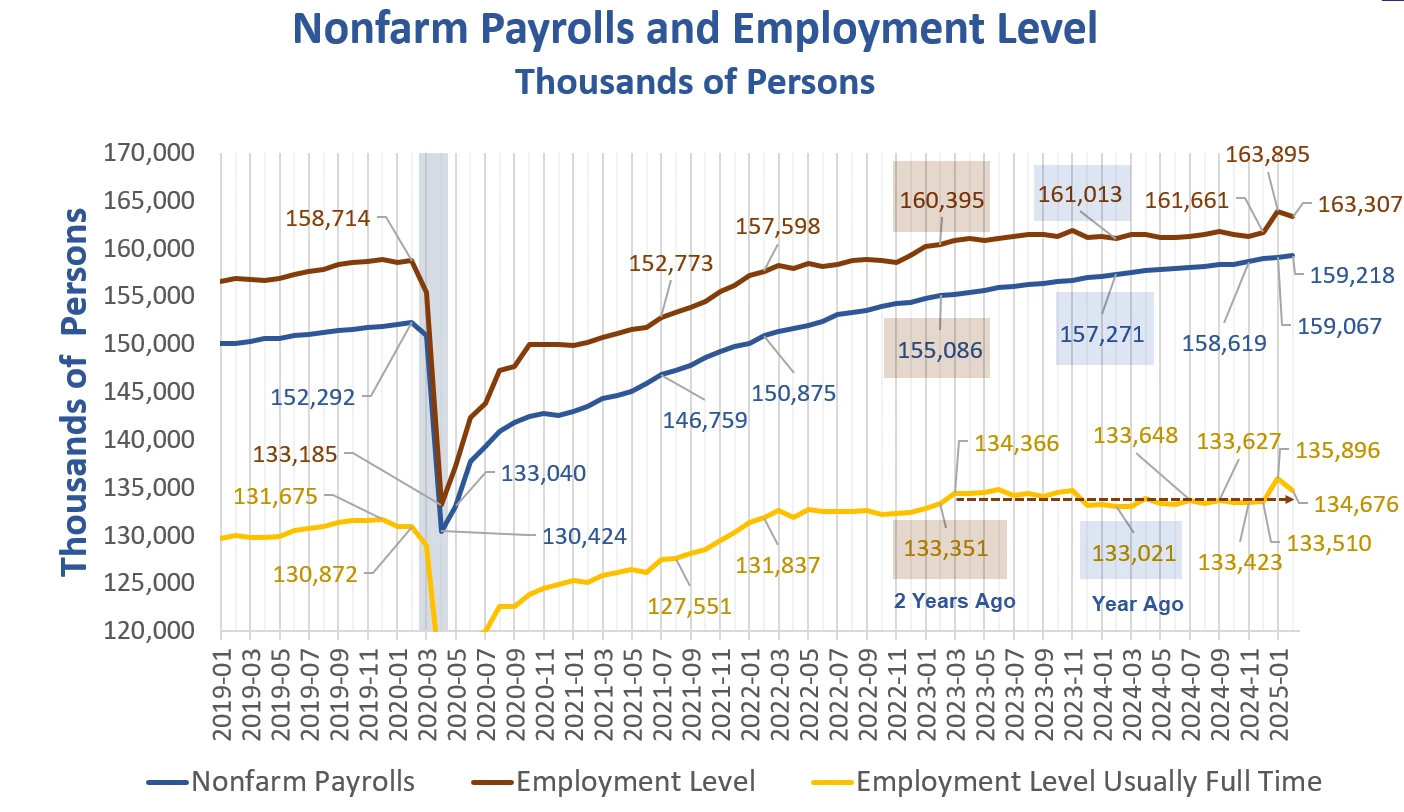 図3:米国の非農業部門雇用者数の変化 2019-2025年 出所:Mish Talk