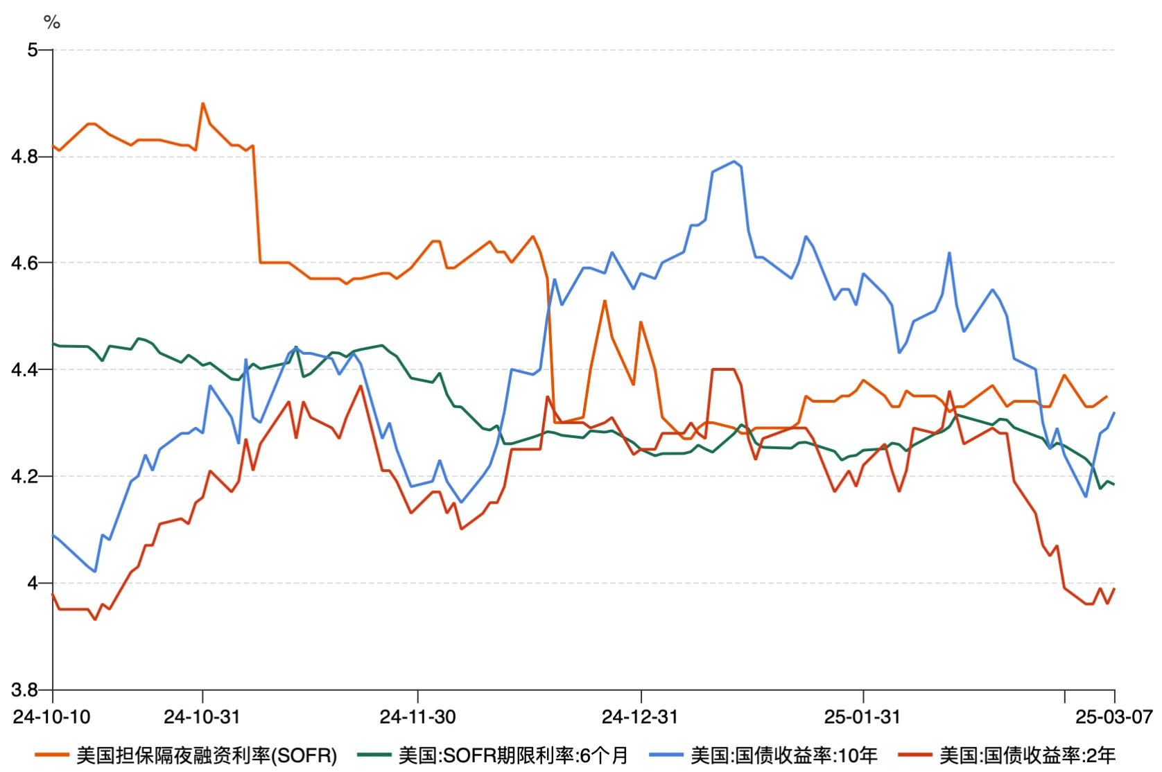 3)金利市場:短期調達金利は低下し、市場は今後6カ月間の利下げに賭け、10年物国債利回りは上昇に転じ、景気後退予想が緩和されたことを示唆しています。