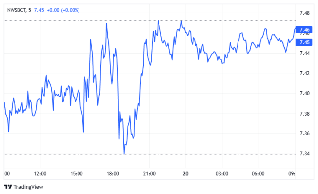 NWSBCT (ブルーチップ指数): グラフは明確な回復構造を示しています。左側の急落と即時反発の後、指数は水平チャネルに入りました。現在、最近の抵抗レベルのやや下で取引されており、売り圧力を吸収しつつも大きな地歩を失わない統合パターンを形成しています。