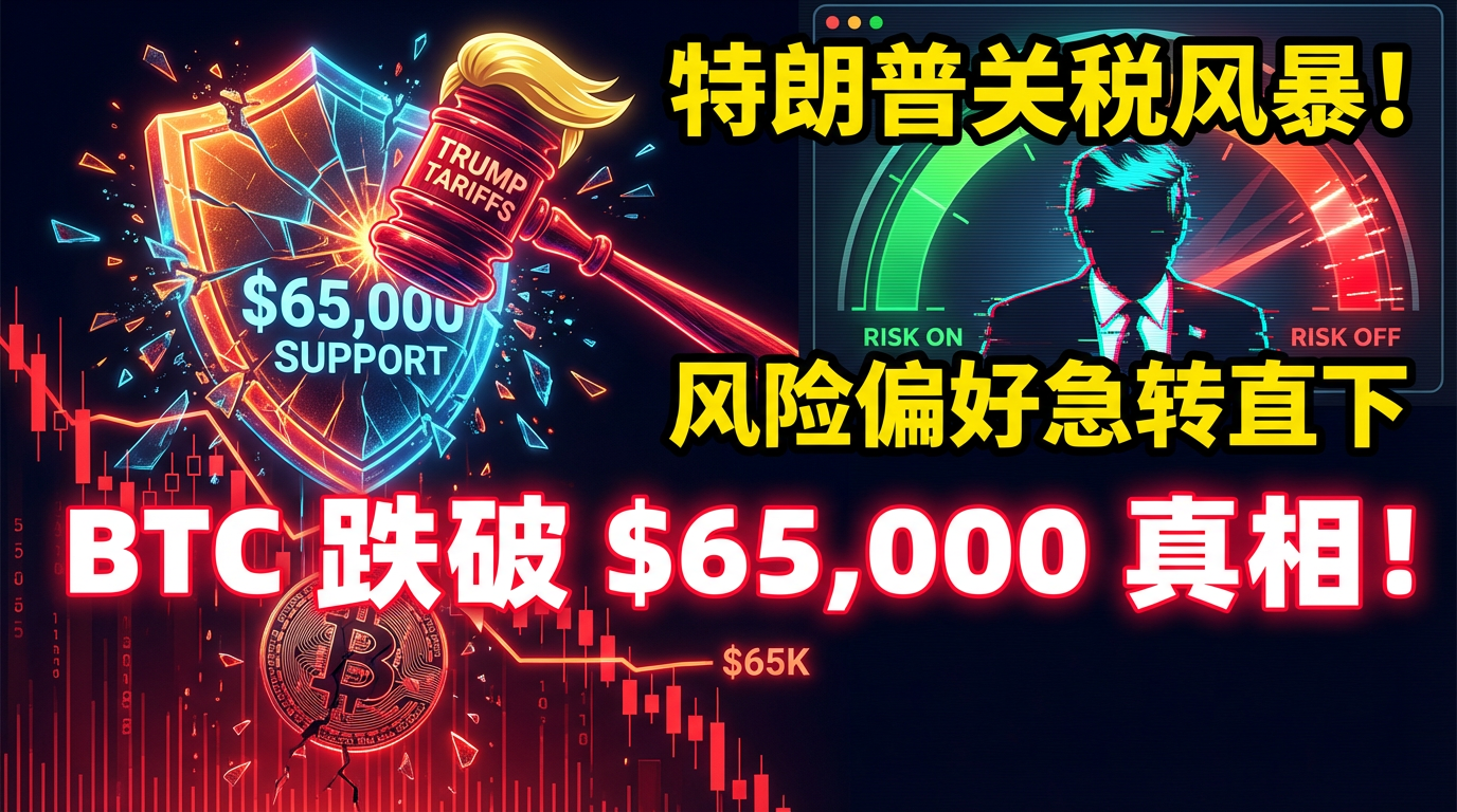 トランプ関税の衝撃 + リスク志向の急転:なぜBTCは6.5万ドルを割ったのか=======================================================> 更新:2026-02-24一、最近何が起きているのか------------------------過去数日、「関税」が世界市場のキーワードとなっている:関税政策の新たな実施と反復:アメリカが新たな10%のグローバル関税を導入/実施(「15%に引き上げる可能性」も示唆)、これに加え、関税の合法性に関する司法の進展があり、市場は貿易摩擦とコスト上昇の予測を急速に高めている。リスク資産の同時下落:株式、暗号資産など高い変動性を持つ資産全体が圧迫され、BTC価格は週末と月曜日に明らかに下落し、一時的に65,000ドルを割り込み、その後63,000ドル付近まで下落して変動している。「BTCが6.5万ドルを割ったのは、暗号界の内部の大きな出来事ではなく、マクロ経済のリスク志向が突然反転したからだ。」二、なぜ関税がビットコインに「影響」するのか?(マクロの伝導経路から解説)------------------------------------------------------多くの人は直感的に思う:関税は貿易問題であり、なぜBTCに影響するのか?その核心は:関税は市場の将来の「成長・インフレ・金利」の予測を変え、それによって全市場のリスク志向を変化させることにある。1)関税 → コスト上昇 → インフレ期待の高まり(または少なくとも不確実性の増大)関税は本質的に「追加税負担」のようなもので、企業が負担するか、消費者に転嫁される。市場が「コスト上昇が継続する」と考え始めると、インフレの経路を再評価する:インフレ期待の上昇:金利を下げにくくなるまたは、不確実性が著しく増大:資金は「リスクの高い資産から先に撤退し、確実性を待つ」2)インフレ・不確実性 → 米国債金利・ドルの強含み → 世界的な流動性縮小市場がインフレの頑固さや政策の引き締めを懸念すると、一般的に次のような結果になる:金利予想の上昇(割引率の上昇)ドル資産の魅力増加(ドル高)これらは「リスク資産の評価」に対して圧力となる:割引率の上昇:将来のリターンがより厳しく割り引かれるドル高:世界の資金はドル資産に回帰しやすくなる3)リスク志向の低下 → 高Beta資産が先に打たれる(BTCはしばしばこのタイプ)短期的には、BTCは「高変動リスク資産」(高Betaのハイテク株に似ている)であり、伝統的な避難資産ではない。市場がリスクオフ(避難)モードに入ると、資金はまず次の資産から引き上げられる:変動性の高い資産流動性が相対的に低い資産「リスク志向」を支えるストーリーの資産そのため、「直感に反するが非常に現実的な」現象が見られる:金は上昇、BTCは下落 —— これは短期的な資金の性質が異なるため、矛盾しない。三、なぜ「重要価格帯を割る」ことが加速下落につながるのか?(暗号界の加速器)--------------------------------------------------------------マクロが主軸だが、BTCの変動が「より激しい」理由には、次の3つの加速器もある:1)ETF資金流入:受動的買いが減少し、市場が脆弱に過去2年、現物BTC ETFはBTCに「構造的な買い圧力」をもたらした。しかし、ETFからの純流出が続くと、受動的買いが減少し、市場はネガティブな情報に敏感になる:下落時に「誰も買い手がいない」反発にはより多くの新規資金が必要2)レバレッジ/デリバティブ:重要ラインの突破が連鎖的な清算を引き起こす暗号界でよくある下落パターンは「心理的節目を割る → 損切り/清算を誘発 → さらに下落」となる。$65,000のような心理的ラインを割ると、多くの戦略が自動的にポジションを縮小:取引所の強制清算量的損切りオプションのヘッジによる受動的売却「暗号界はニュースで下落するのではなく、ポジション構造の変化で下落する。」3)流動性と週末効果:薄い板は踏みやすい週末やアジアの早朝など流動性が低い時間帯は、板が薄くなる:同じ売り圧でも価格の急落を引き起こしやすい下落が「針を通す」ように重要なサポートを突破しやすい四、注目すべきポイント------------------注視すべき指標その理由解釈ドル指数(DXY)リスク志向とドルの強弱はしばしば同じ方向に動く「ドルが強いと、リスク資産は息切れしやすい」10年国債利回り割引率と金融環境の直感的な反映「金利が上がらないと、評価は広がりにくい」金/避難資産の動き本当にリスクオフに入ったか判断「金が上昇し、BTCが下落するのは、多くの場合避難資金の流れ」株価指数(特にハイテク株)BTCの短期的な相関は「ナスダック高Beta」に近い「ナスダックが弱いと、BTCだけが強くなるのは難しい」現物BTC ETF資金流入構造的買い圧力が「吸水」しているか「ETFが流出していると、反発も反動の可能性」資金費率/未決済建玉(OI)レバレッジの清算や再踏みの兆候「費率が冷え込み、OIが縮小すれば、清算の兆し」取引所の純流入(オンチェーン/取引所データ)「本当の売り圧力」が出ているか、先物のノイズではないか「大量の資金が取引所に流入している場合は、売り準備とみなせる」五、3つのシナリオ予測----------------シナリオA:関税のさらなる引き
