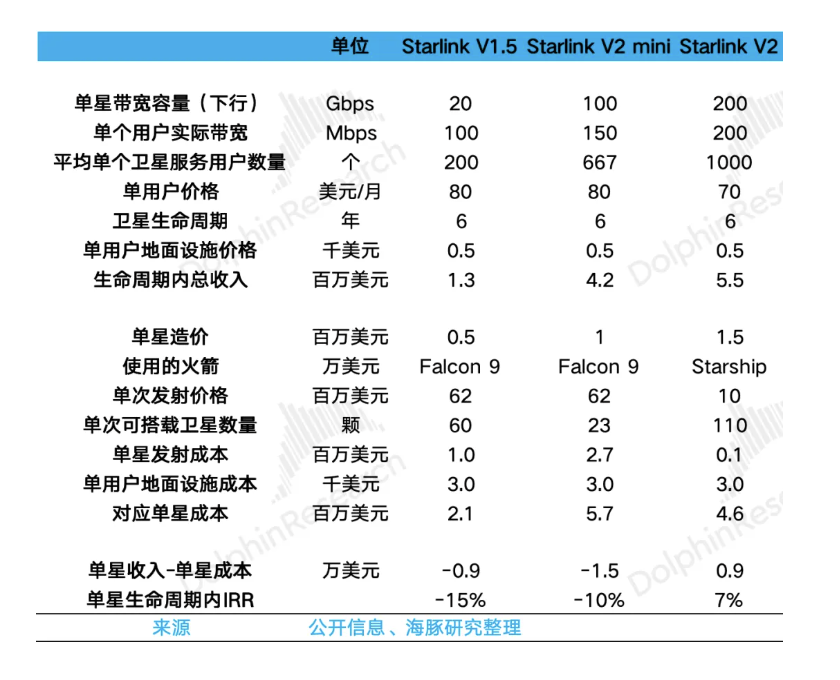 試算します: 現在のStarlink衛星はV1(V1.5とV2 mini)が中心。大量のユーザ流入により帯域が逼迫し、サービス品質が低下しています。今後、V2衛星の打ち上げにより容量は大きく増加しますが、その分コストも膨らみます。V1.5の衛星造価は約15億ドルですが、V2は600億ドル超に膨らむ可能性も。