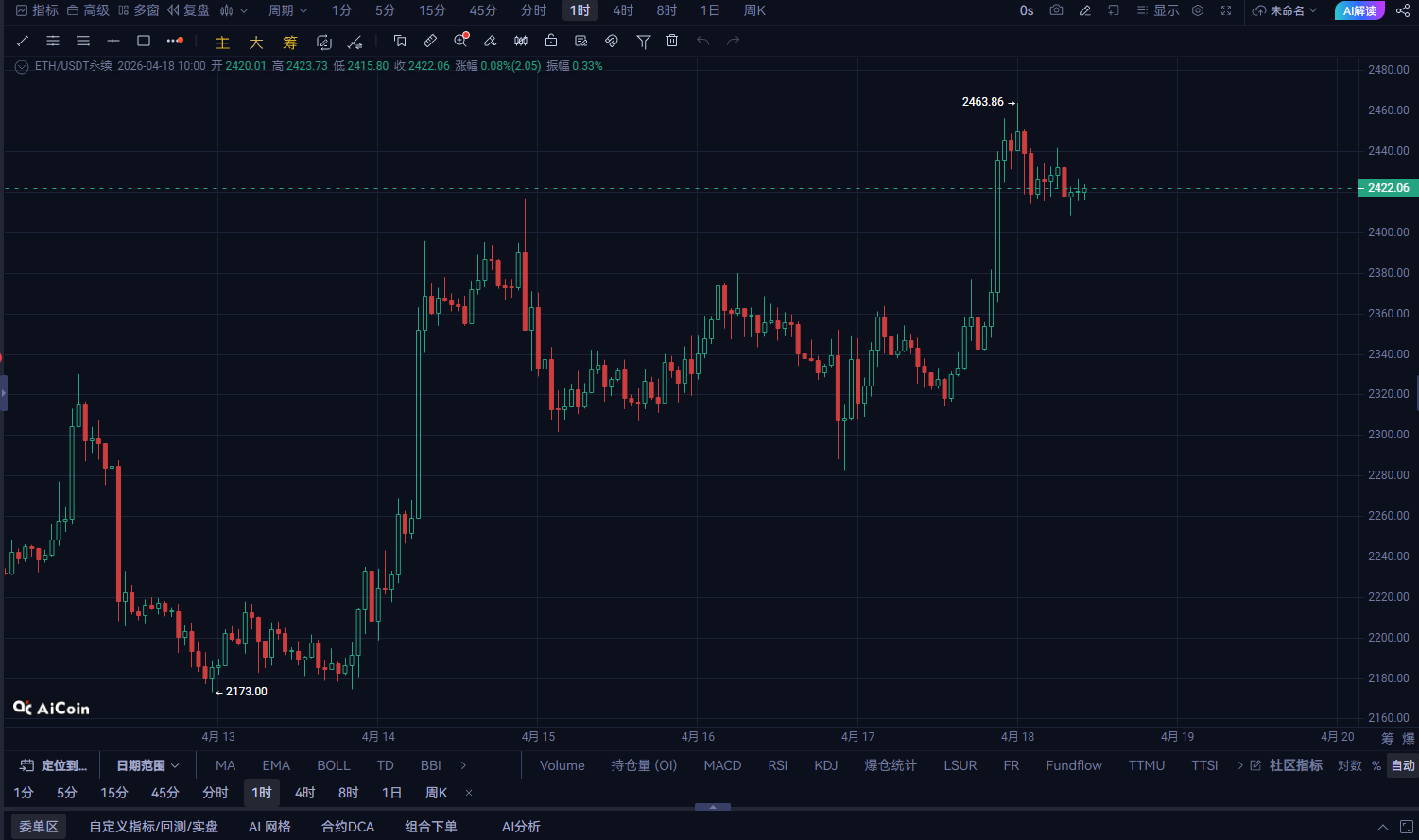 ETHは2400を突破した後、短期的に乱高下し整理されている。再び2460を突破できるかが重要なポイントだ!