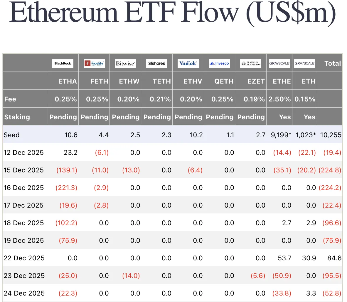 Leading Ethereum product issuers accounted for the bulk of the inflows, helping support prices near the $3,000 level as trading continues into year-end.