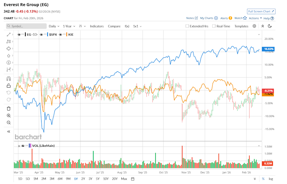 Zooming in further, EG has outpaced the State Street SPDR S&P Insurance ETF (KIE), which declined marginally over the past 52 weeks and dropped 4.1% on a YTD basis.