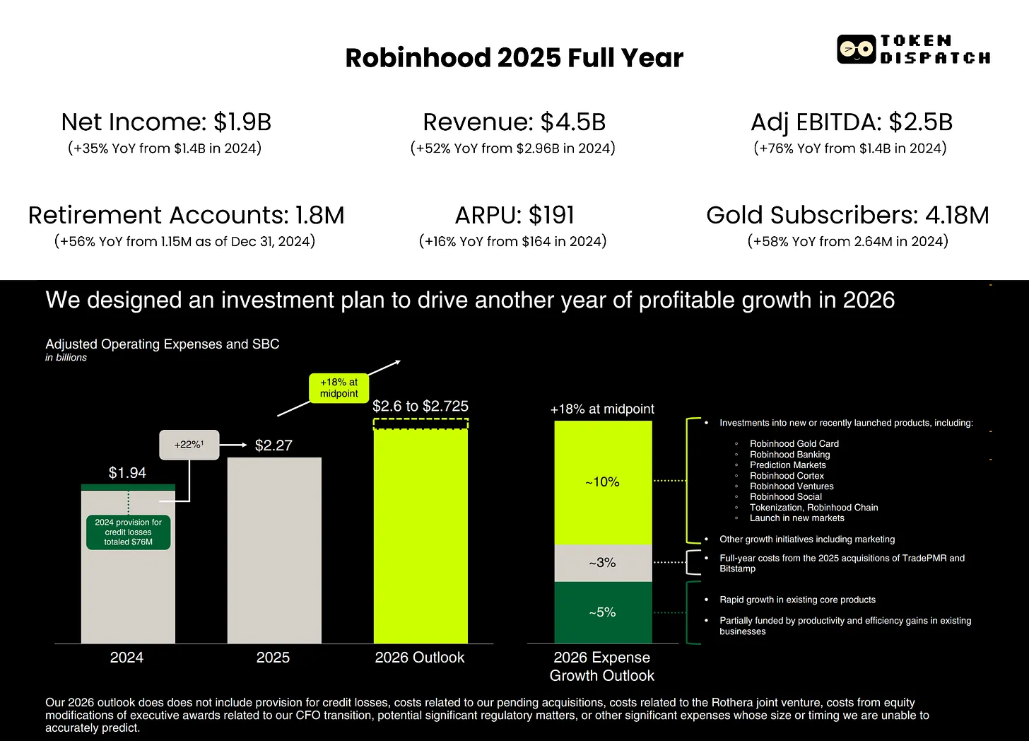 Robinhood Banking launched officially a few months ago, targeting early customers. By the end of January, it had 25,000 paying customers with total deposits of $400 million. More than half of these customers have set up direct deposit, which Tenev considers the most encouraging sign. It means these customers are shifting their financial lives into the Robinhood ecosystem, no longer just experimenting. But compared to the platform’s $324 billion market cap, $400 million in deposits is still tiny. Banking is a long-term game, and Robinhood must be prepared for the challenges ahead.