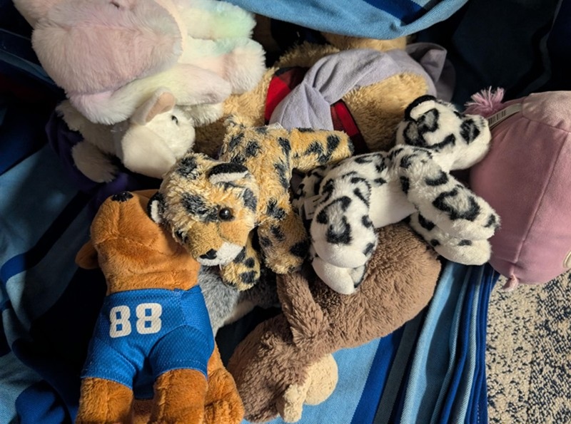 A full _farm _thriving behind a brigade of stuffed animals wedged against the wall. (The stuffies block the airflow, providing cover for this ecosystem.)