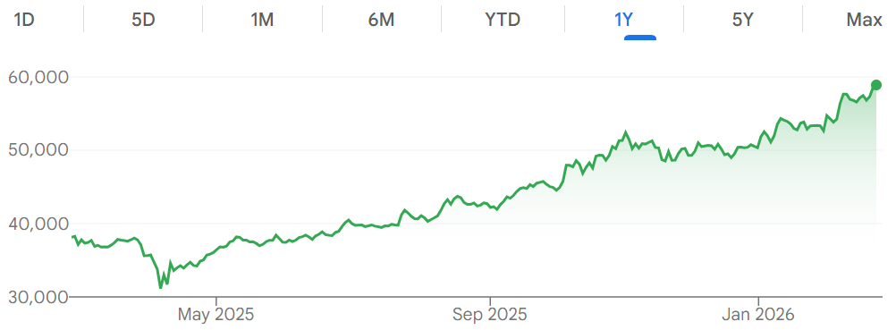 This Thursday, the Japan Nikkei 225 Index hit a record high during trading, surpassing the 59,000-point mark for the first time in history.