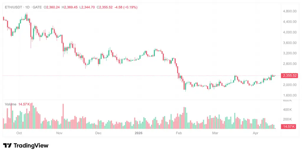 Based on Gate market data, as of April 16, 2026, Ethereum’s real-time price is 2,359.3 USD, the increase over the past year is +44.72%, and its total market cap remains at 271.24 billion USD.