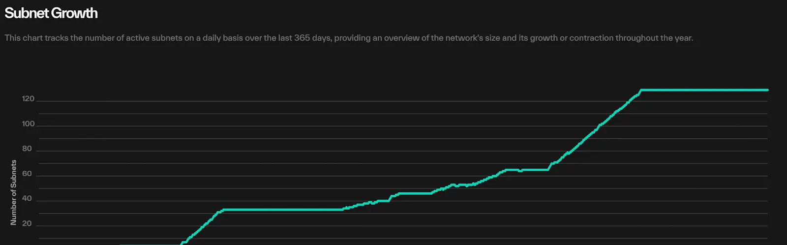 E o crescimento das sub-redes tem sido forte. Desde o início de 2025, o número de sub-redes aumentou 97%, de 65 para 128.