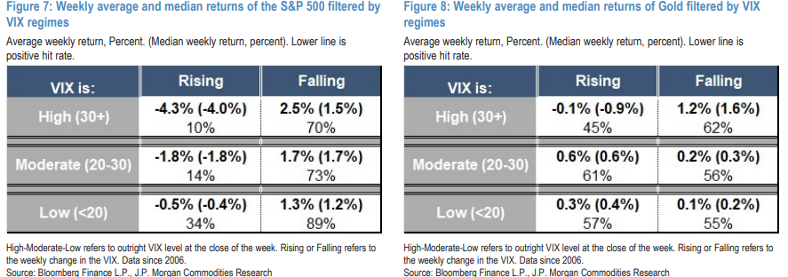 No curto prazo, o ouro pode ser facilmente afetado por eventos de desrisco generalizado. Contudo, essa venda impulsionada por liquidez costuma ser temporária. Nos primeiros dias após o VIX ultrapassar 30, as vendas de ouro são mais intensas, mas, em 10-15 dias, à medida que o VIX recua, o ouro costuma se recuperar.