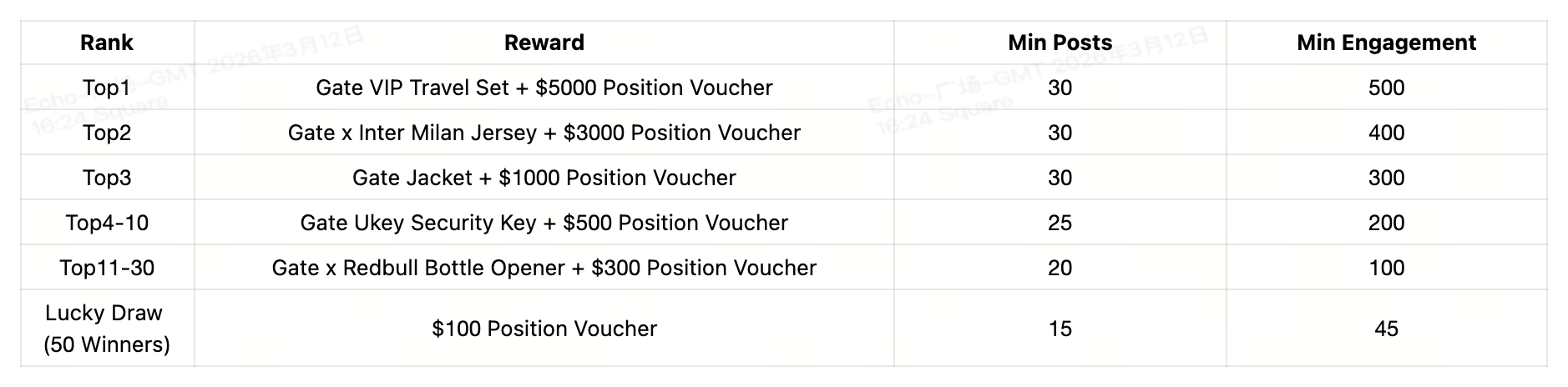 Publique sobre IA para ganhar Conjuntos de viagem VIP Gate, Camisolas Gate x Inter Milan, Vouchers de posição e Tokens populares. Conteúdos de elevada qualidade poderão ser destacados na Tabela de classificação de análise de IA e reconhecidos como principais avaliadores de IA na comunidade.