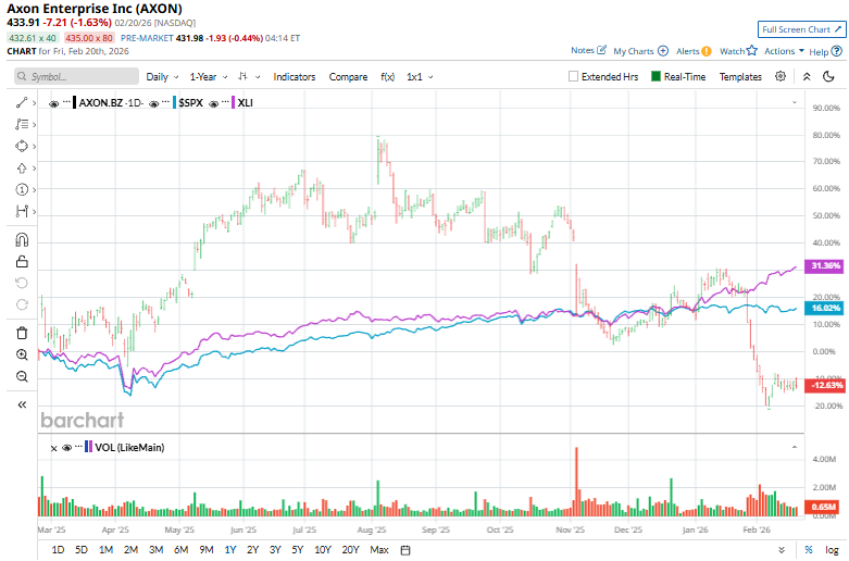 A Axon Enterprise ficou atrás do mercado mais amplo no último ano, principalmente devido à compressão de valuation e às pressões de rentabilidade de curto prazo. Após uma forte valorização até 2025, que levou a ação a múltiplos muito elevados, o sentimento dos investidores esfriou à medida que resultados abaixo do esperado, inflação de custos relacionada a tarifas e aumento de despesas operacionais comprimiram as margens, levando a vários trimestres de métricas de lucro decepcionantes, apesar do forte crescimento de receita.