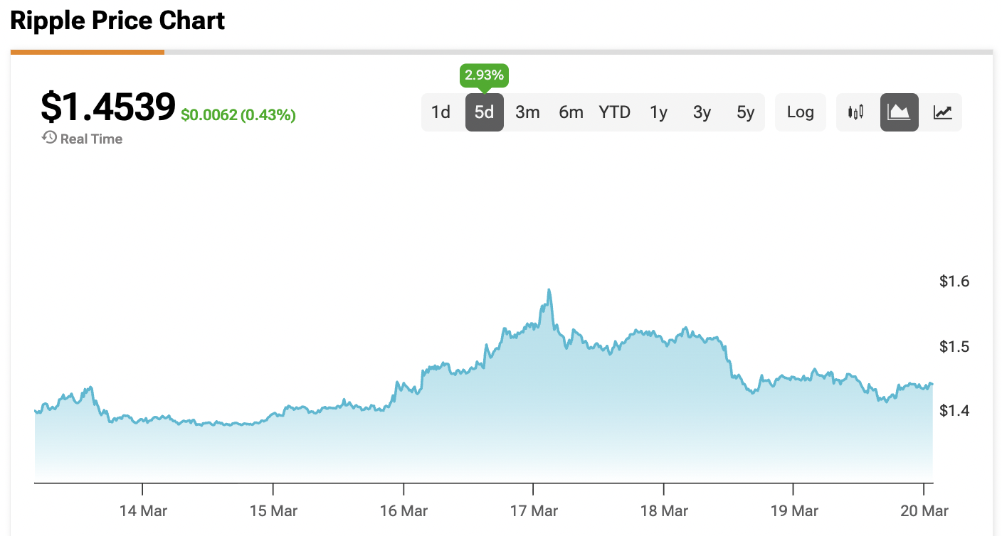 No momento da redação, o preço do XRP está em 1,4539 dólares.