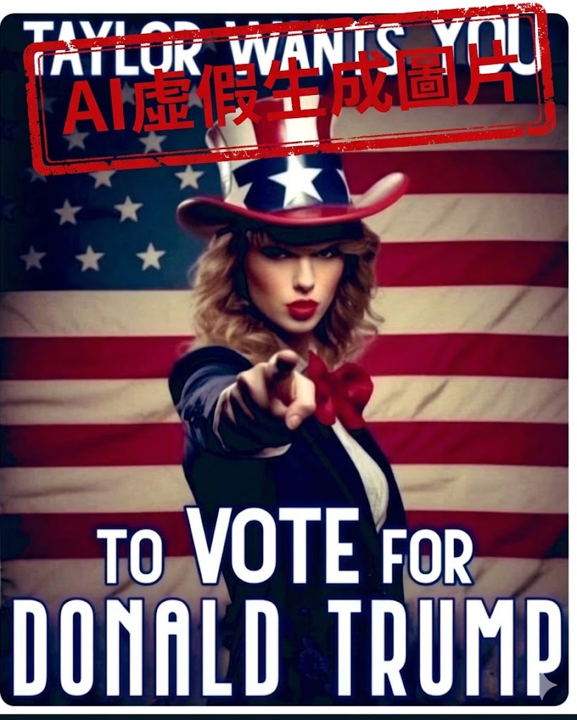 Fonte da imagem: Gemini sintetiza Imagem falsa gerada por IA de Taylor Swift apoiando Trump, com a inscrição “Imagem falsa gerada por IA” adicionada pela Gemini